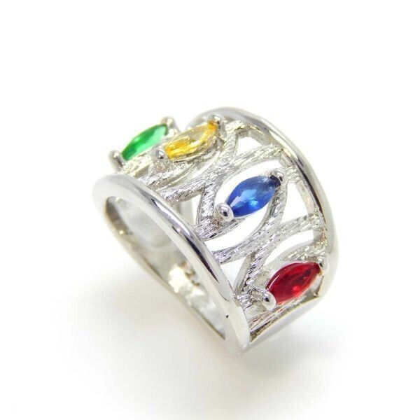 > 新品★送料無料 11号 4連多彩なCZダイヤモンドリング 訳あり品 XR-C11 シルバー925 プラチナ仕上 レディース 指輪 匿名配送 厳選 未使用