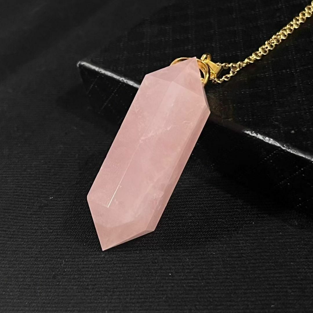 - 【恋愛運・母性】最高のお守り、ローズクォーツの六角柱ダブルポイントネックレス