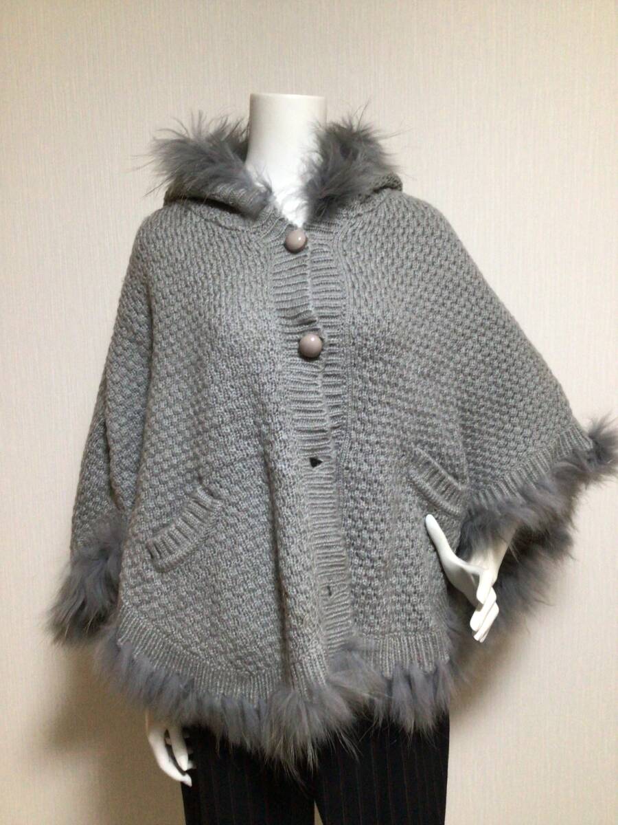 - M1678/INVERNALE ISSIMO あったかラクーンファーポンチョ/M〜L/グレー