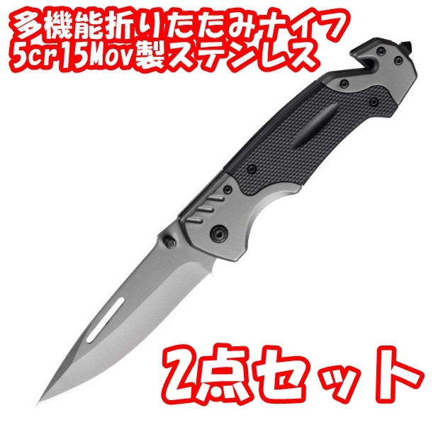 - 【2点セット】アウトドア ナイフ 折りたたみナイフ 多機能ナイフ フィッシングナイフ ステンレス製 切れ味良い(色:グレー)YD207