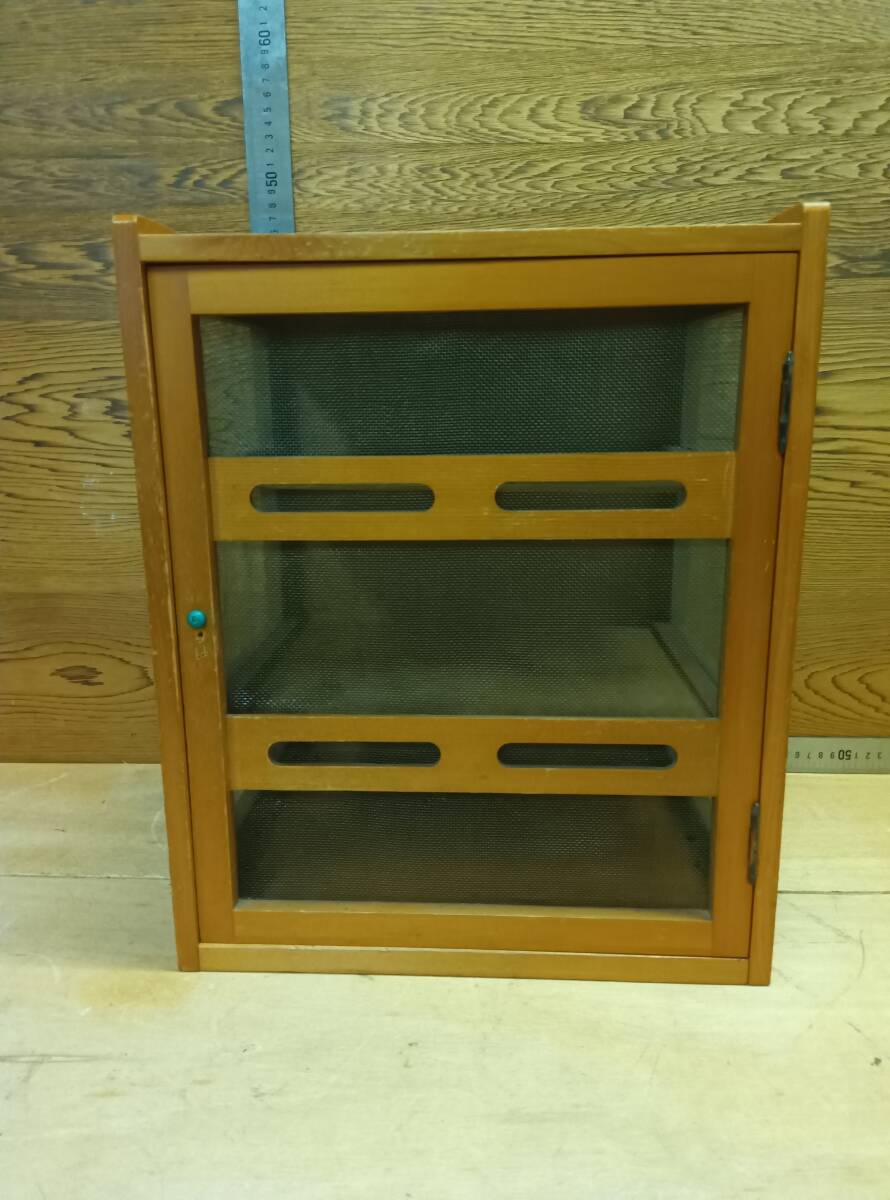 - 24120909 木製食器棚 網扉付き 3段 蚊帳 水屋 網戸棚 キャビネット フードカバーボックス インテリア家具 コレクション