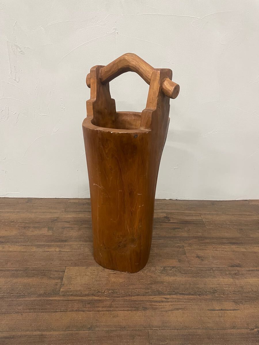 - チーク材 総無垢 手彫り 傘立て インテリア ドライフラワーベース 花入 オブジェ ディスプレイ 撮影什器 アジアン バリ おしゃれインテリア