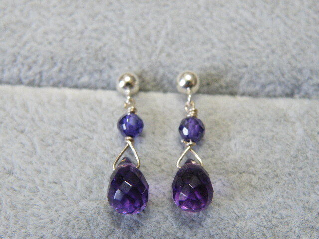 - R00133.アメジストカラーストン シルバー925 ハンドメイド ピアス