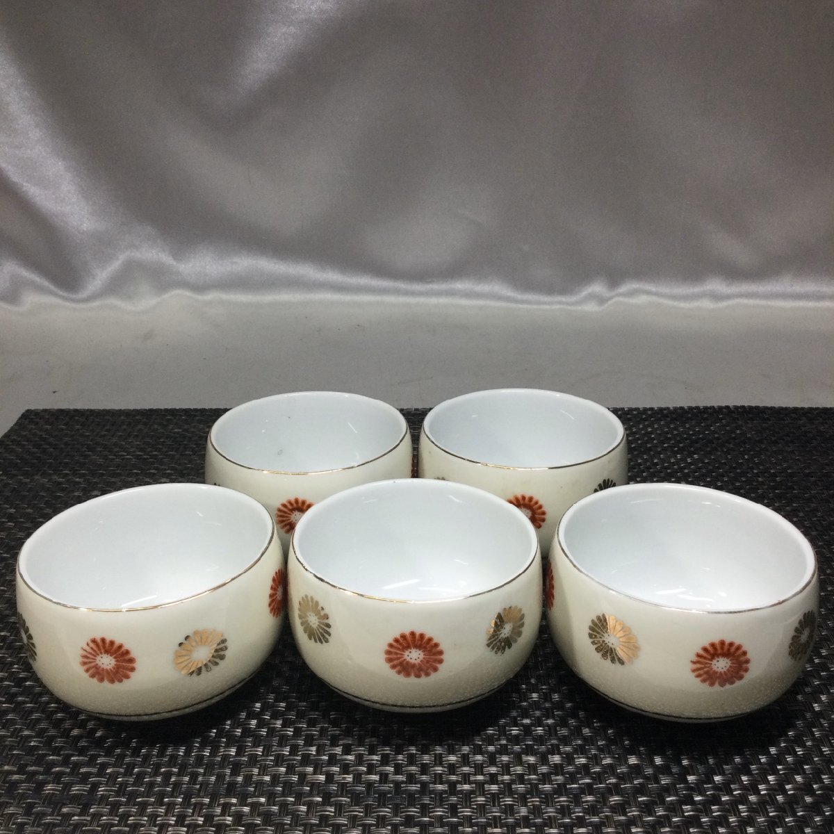 - 【長期保管/現状品/TSS】湯呑 湯飲み 茶器 蓋無し 金彩 陶器 口径約7.5cm 5客セット 和食器 MZ1116