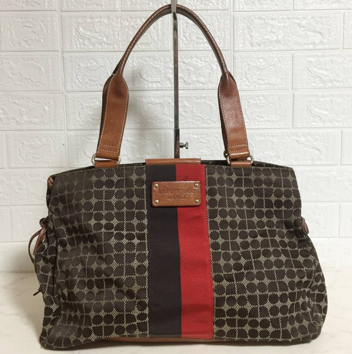 > no30122 kate spade new york ケイトスペード 本革 レザー キャンバス 肩掛けショルダー トート バッグ 通勤 通学 A4収納可能