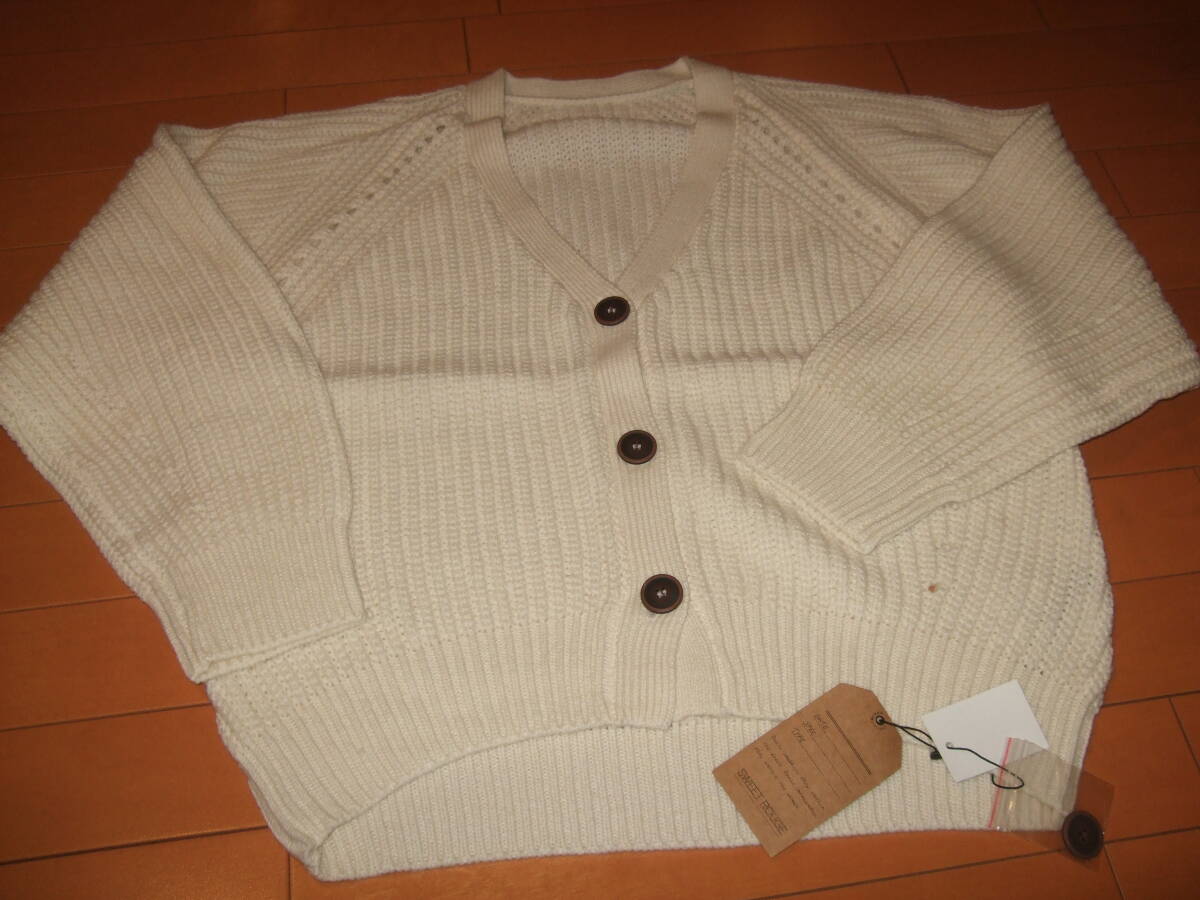 - 新品タグ付送料込即決☆SWEET ROUGE ザックリ編カーディガン☆L ホワイト
