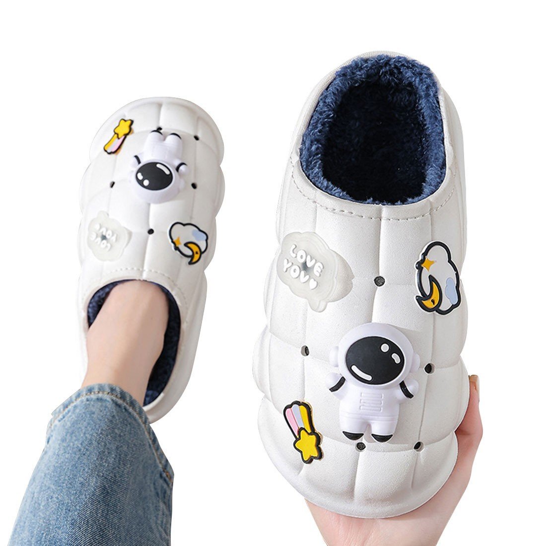 - チャーム付きスリッパ かかと無し 大人用 23.5cm ホワイト レディース ボア付き 防水 裏ボア 防寒 防滑 厚底スリッパ