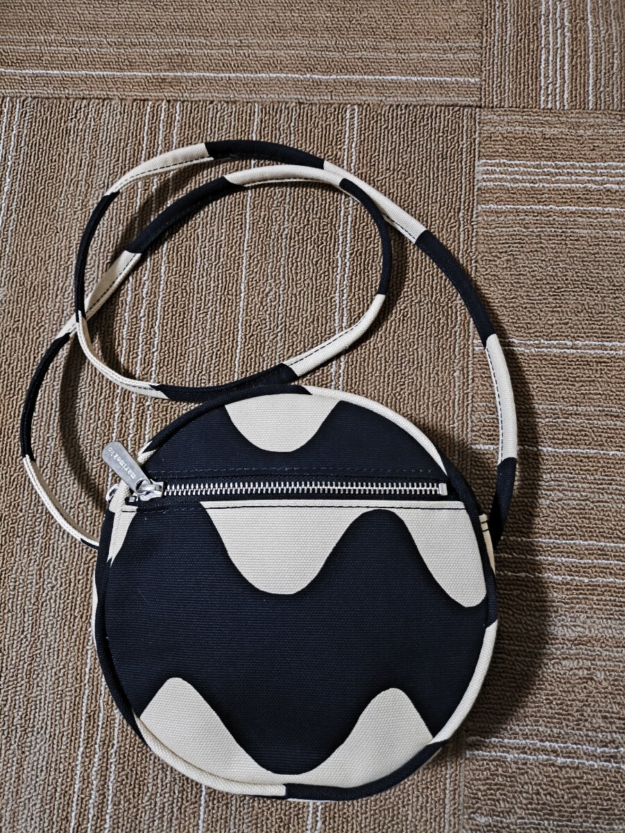 > 美品 marimekko マリメッコ ウニッコショルダーバッグ ベージュ×黒 キャンバス