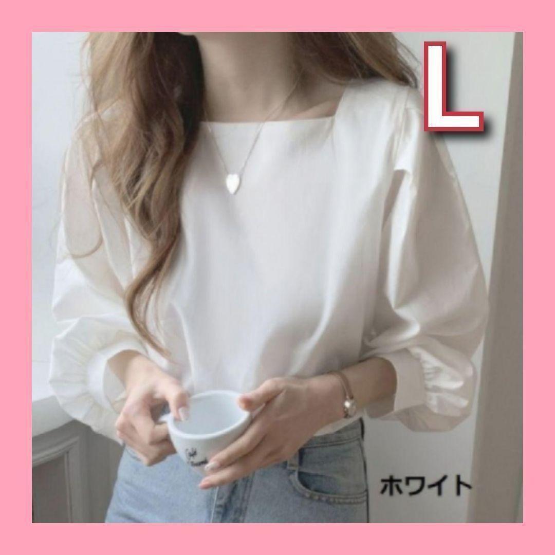 - ブラウス スクエアネックブラウス ホワイト 長袖 シャツ パフスリーブ L