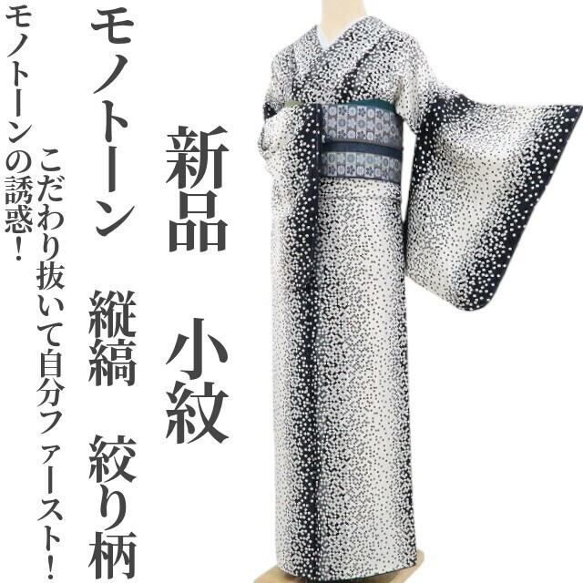 - tomihisa 新品 モノトーン 縦縞 絞り柄 着物“モノトーンの誘惑!こだわり抜いて自分ファースト!”正絹 仕付け糸付 小紋 4873