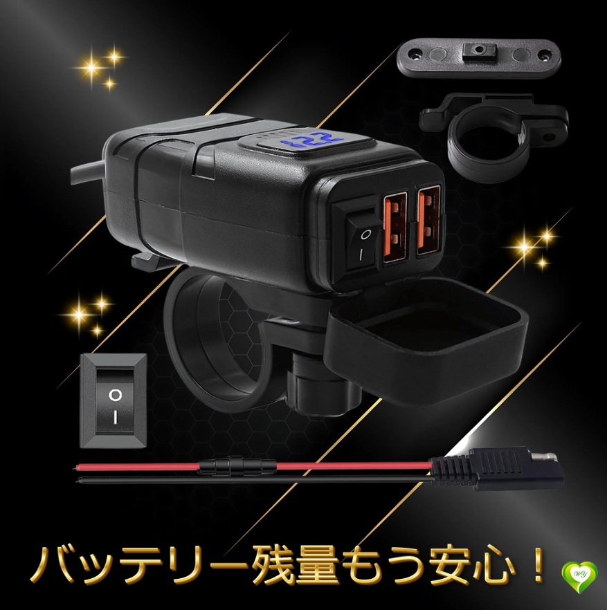 - 【安定供給で安心ツーリング】バイクUSB電源 防水 ソケット Aポート2個 急速充電ポート 独立電源ON/OFFスイッチ 過圧保護 安心 高性能