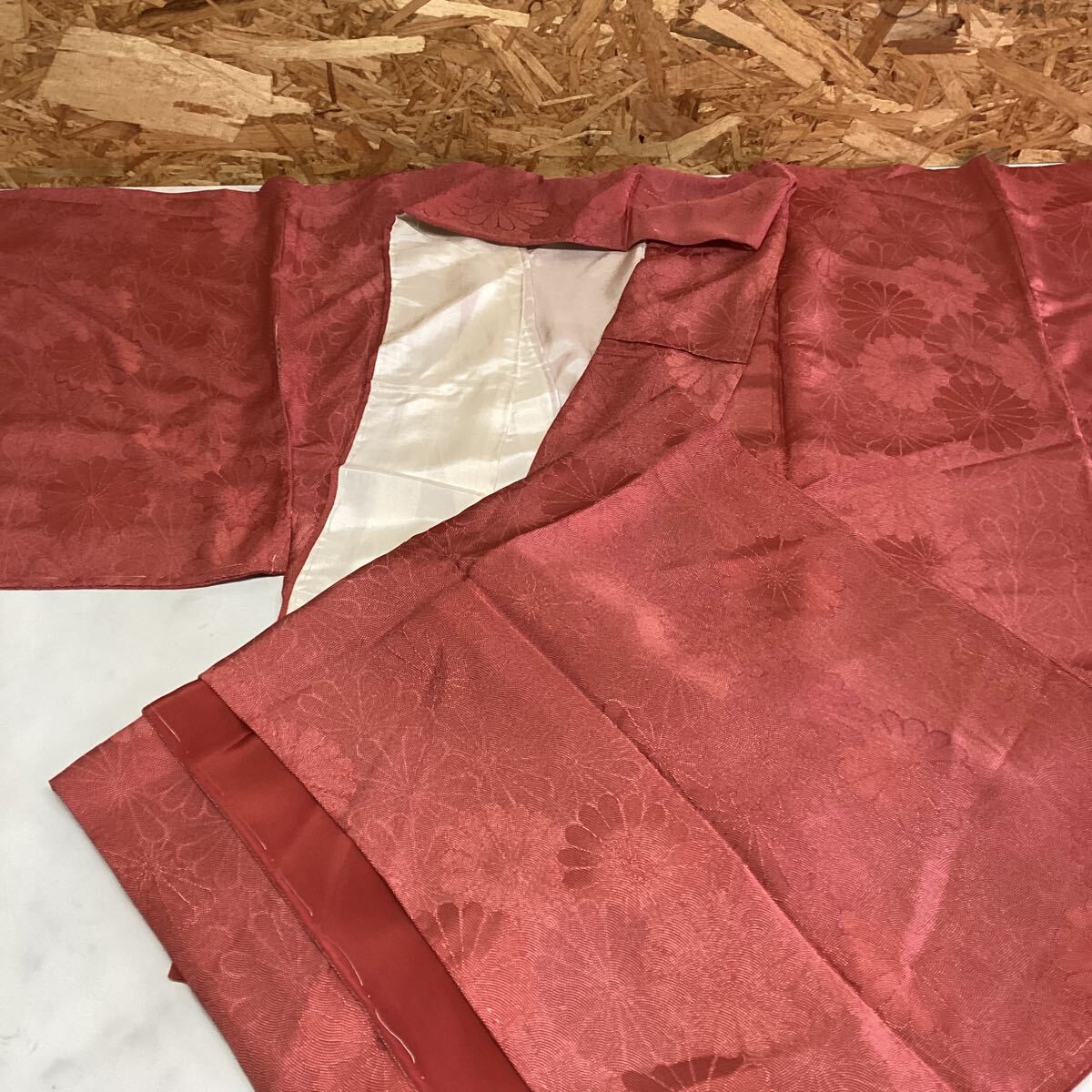 - 着物 花柄 オレンジ系 カジュアル 和装 シンプル レディース (く81)