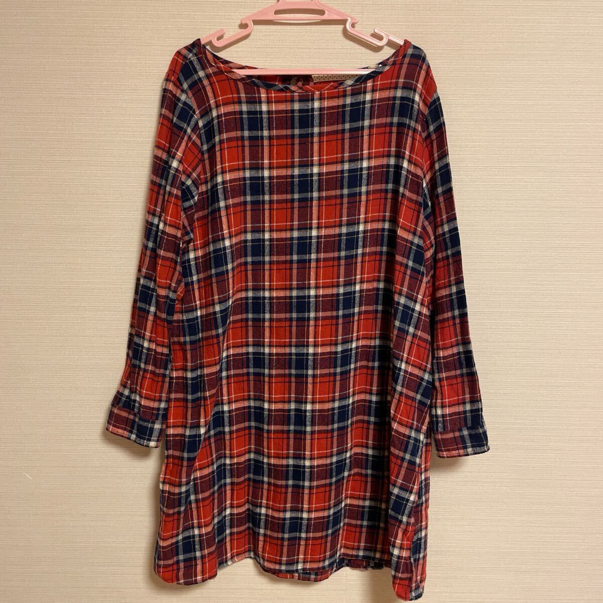 - チェック チュニック 赤×紺 レッド×ネイビー L