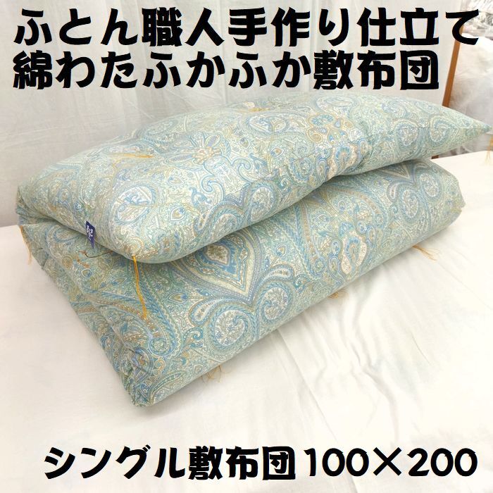 - 送料無料 激安処分 お買得 全国ふとんコンクール入賞の熟練職人が丁寧に仕立てた敷布団 シングル 100×200㎝ 綿わた コットン100% 格安