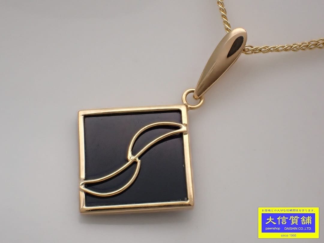 - 750 K18 イエローゴールド オニキスペンダント Wアズキチェーン ネックレス 45cm 3.21g 中古A- 【送料無料】 C-9253