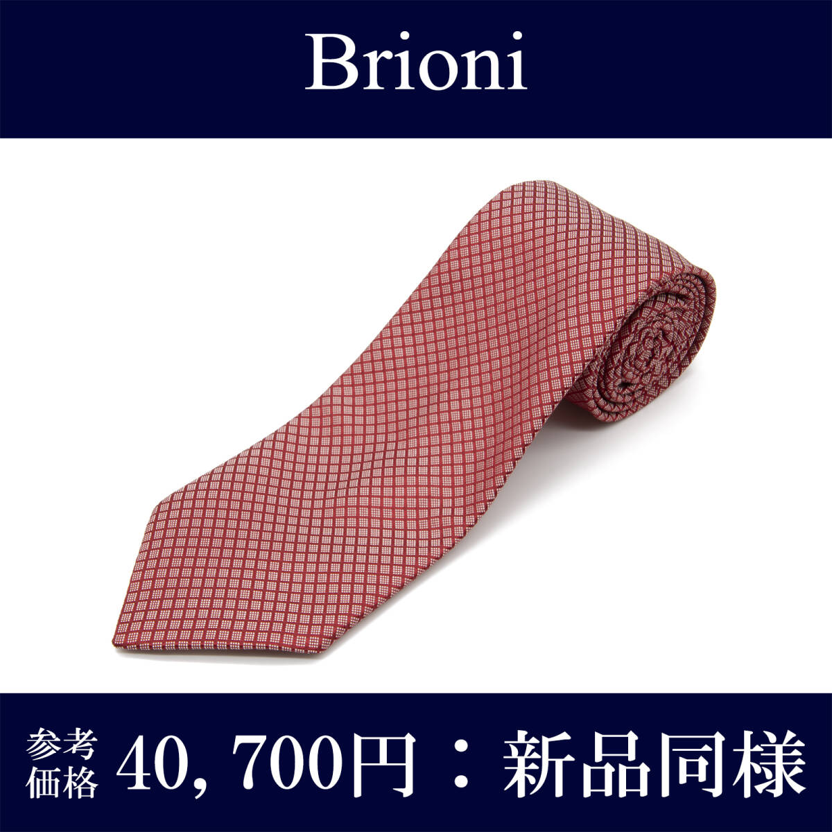 - 送料無料 ブリオーニ ネクタイ 新品同様 ジャガードタイ シルク 赤 レッド 白 ホワイト ビジネス ブランド チェック シンプル レア N465