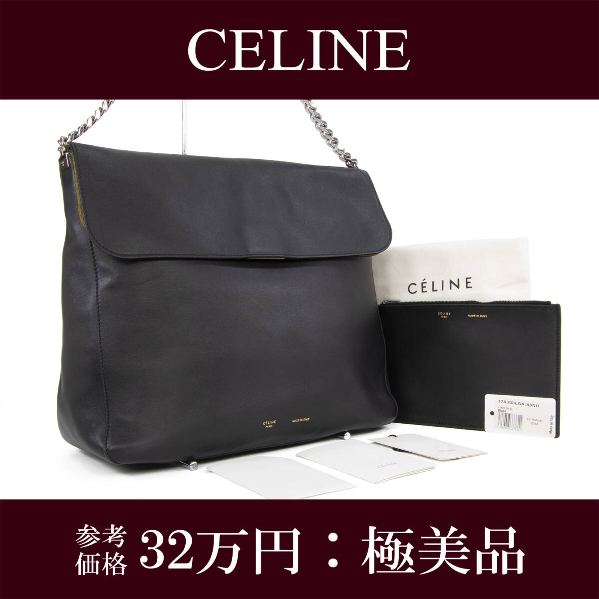 - 本物 送料無料 セリーヌ セミショルダーバッグ レディース ラージホーボー グルメット 黒 ブラック 人気 シルバーチェーン ロゴ 綺麗 E362
