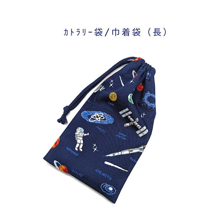 - カトラリー袋・巾着袋 長方形【宇宙遊泳柄 ネイビー】カトラリーケース 箸袋 はし袋 コップ袋 ポーチ 惑星 銀河 地球 星 コスモ ロケット