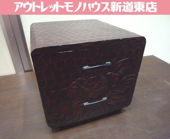 小物入れ 鎌倉彫 小引出 引出し 2段 高さ 約17cm 中古 レトロ 札幌市東区 新道東店