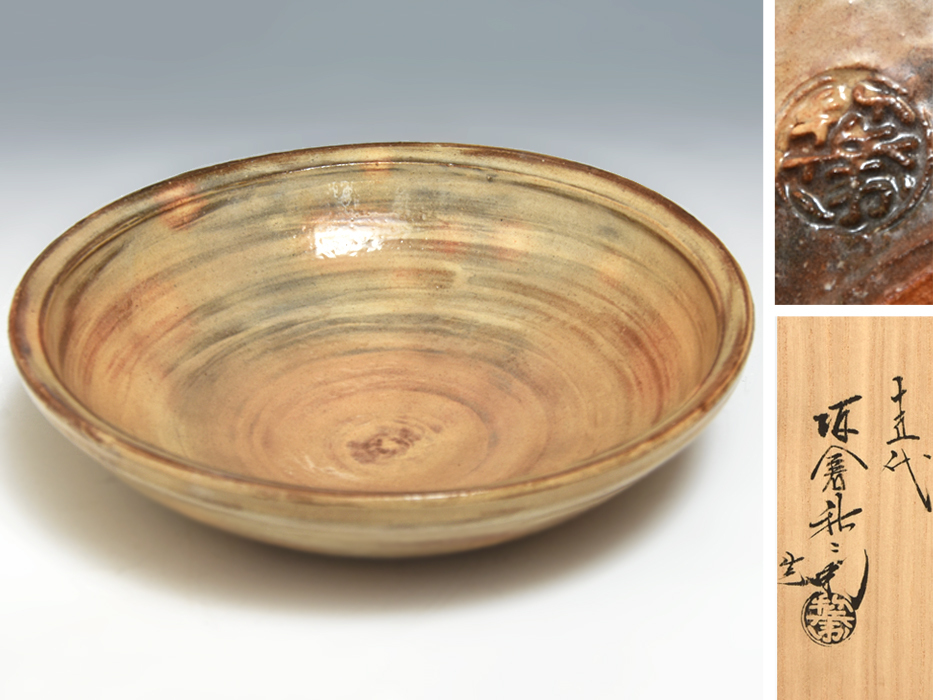 > 聴泉庵 十五代 坂倉新兵衛 (造) 萩刷毛目鉢 共箱 しおり 茶道具 菓子鉢 陶磁器 坂倉正治 z9085a