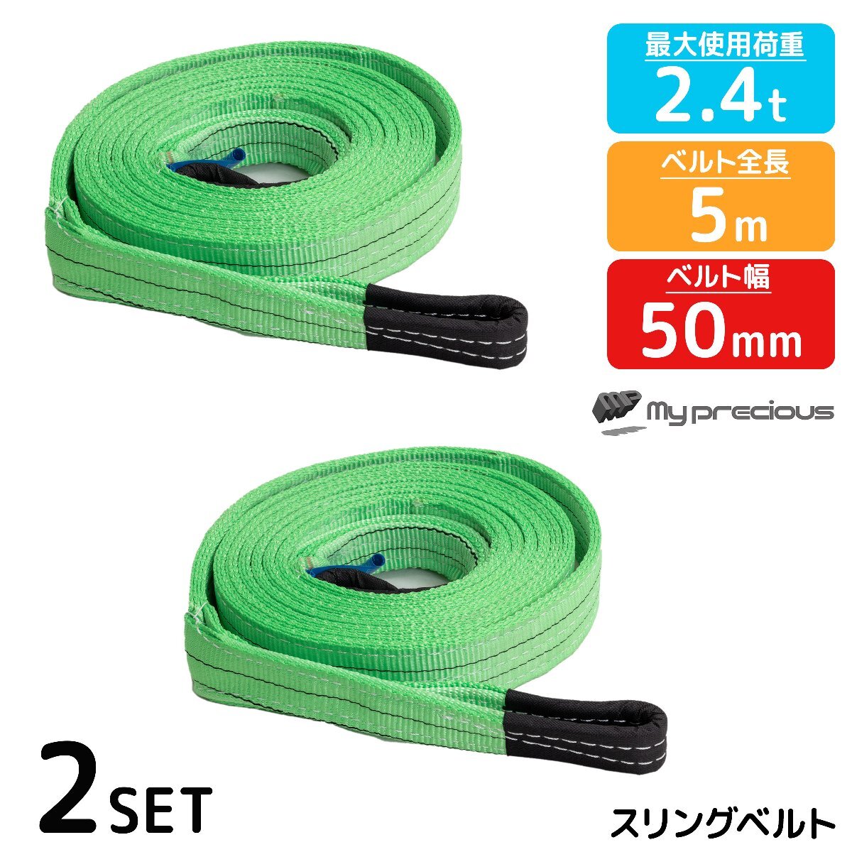 - 【送料無料】スリング ベルト 運搬用スリング 5m 耐荷重2.4t 【2本セット】荷揚げ 吊り上げ 下げ 玉掛け ナイロンスリング グリーン