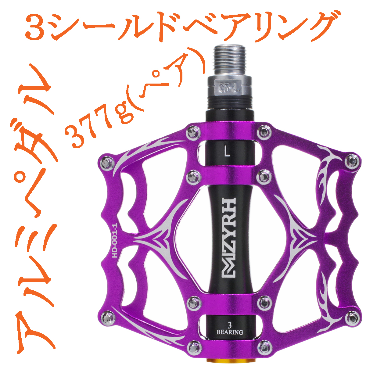 - 新品 アルミペダル 左右セット ベアリング3個搭載 パープル ブラック 【バルク品】 紫 自転車 マウンテンバイク MTB クロスバイク HAMMARS