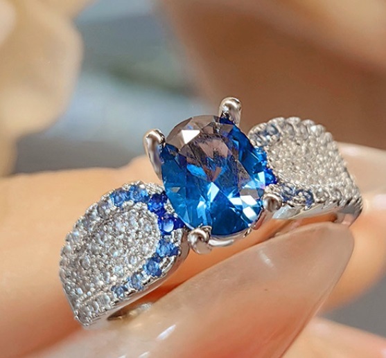 - 人気新販売 高級感 指輪 レディース ブルージルコン 輝き抜群 リング アクセサリー フリーサイズ
