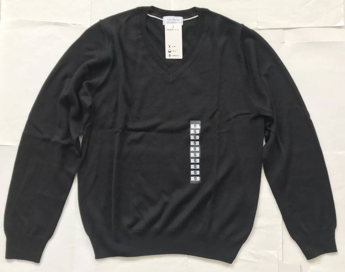> 新品5,489円★洗える Vネックセーター★ハイゲージニット★美しいブラック★ウォームビズ洗濯可★sizeS★LES MUES★滑らかな生地★ビジネス