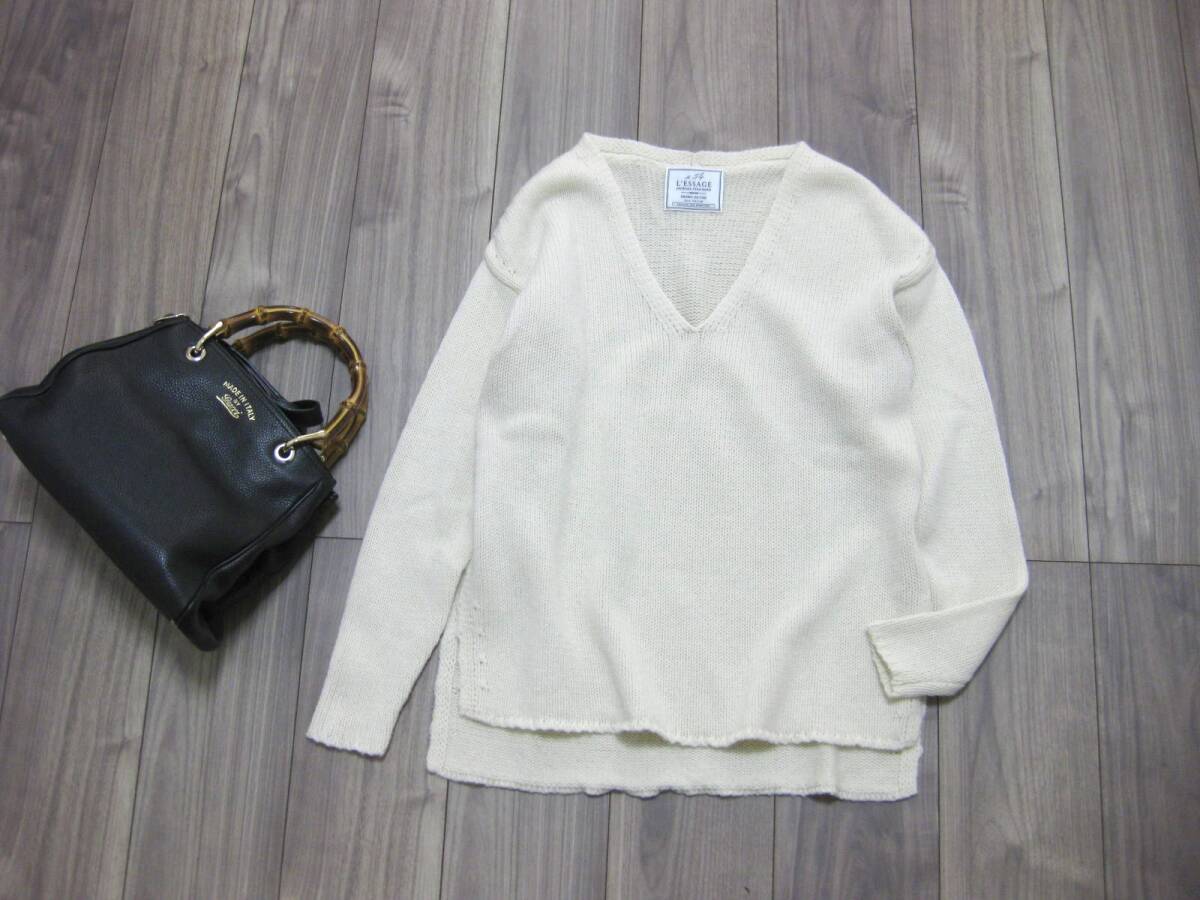 > ☆JOURNAL STANDARD☆ウールニット☆長袖☆F☆オフホワイト☆Vネック☆L'ESSAGE☆編み込みニット☆ゆったりスタイル☆美品☆