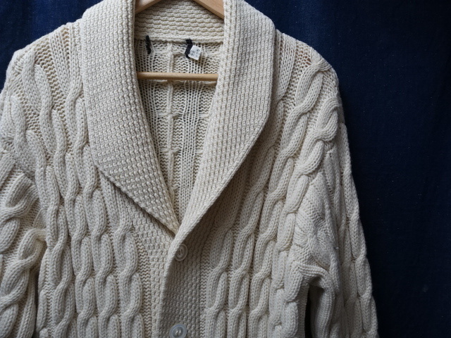 - USA アメリカ 古着 ビンテージ ケーブル編み フィッシャーマン ウール ニット ショールカラー カーディガン / ヴィンテージ / 21