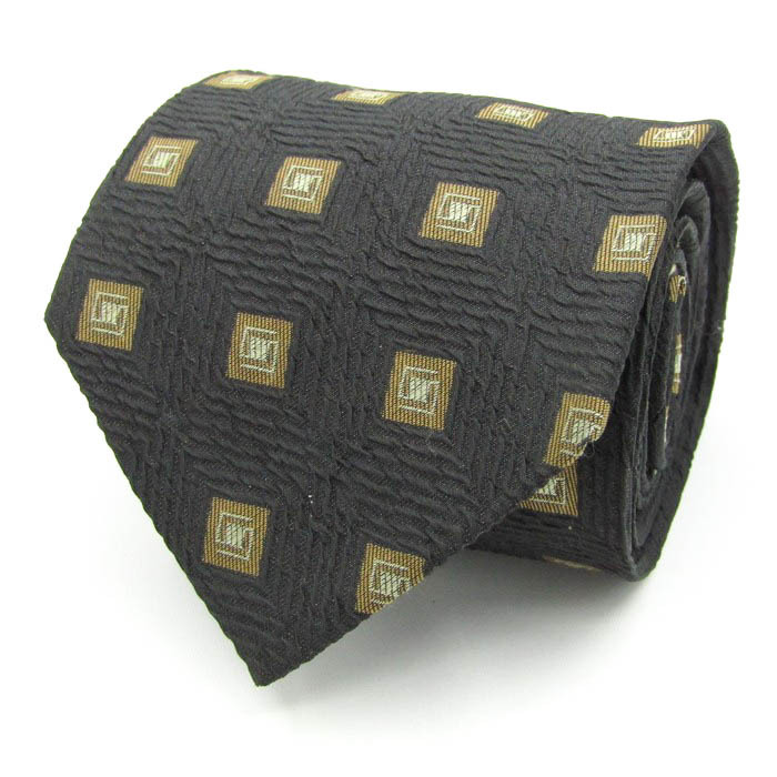 > ミチコ コシノ ブランド ネクタイ 小紋柄 スクエア柄 格子柄 シルク 日本製 PO メンズ ブラック MICHIKO KOSHINO