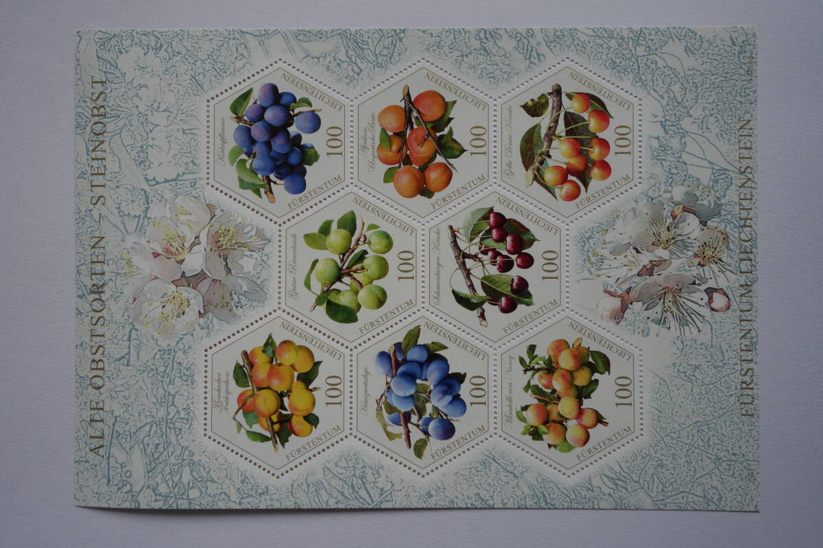 - 外国切手: リヒテンシュタイン切手 「古い果物の品種・核果」大型 8種m/s 未使用