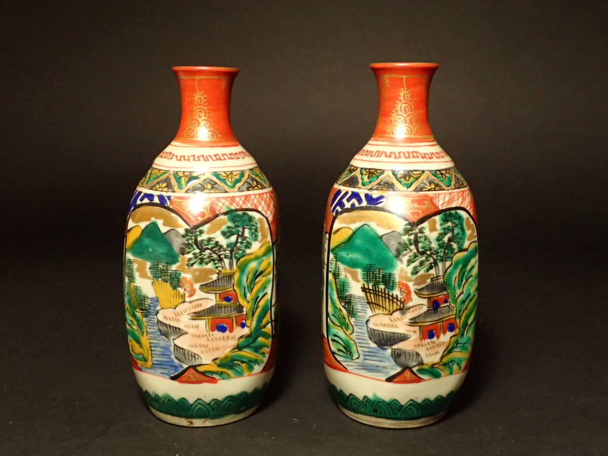 > S-177 九谷焼 徳利 色絵 赤絵 骨董 古美術 美術品 時代物 7.8cmX6.8cm 15.6cm