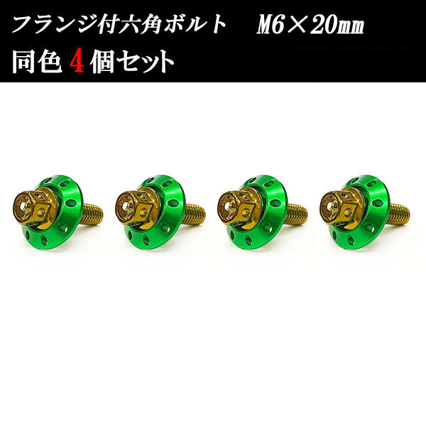> フランジ付六角ボルト M6×20mm P1.0 カラーワッシャー フジツボ 20×4mm 4個set 車 汎用 外装 カー用品 ゴールド×グリーン