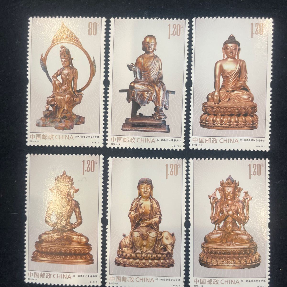 - 中国切手 2013年 金銅仏像 六枚 未使用