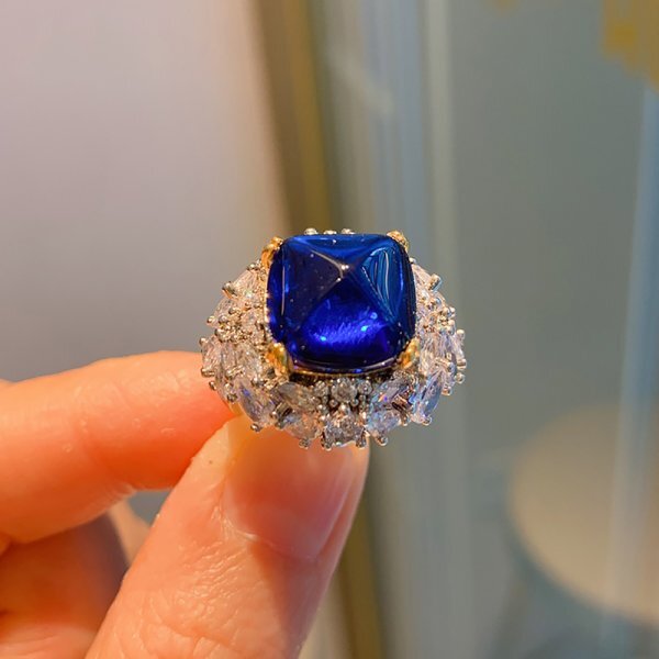 925スターリングシルバー12×12mmタンザナイトリング、女性の高級高炭素ダイヤモンド、ファインジュエリー