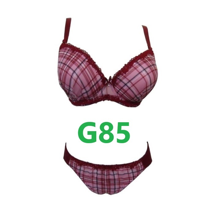 - G85/LL・レッド ブラジャー&ショーツ チェック柄 グラマーサイズ 3/4モードドカップ 補正下着 大きいサイズ 新品