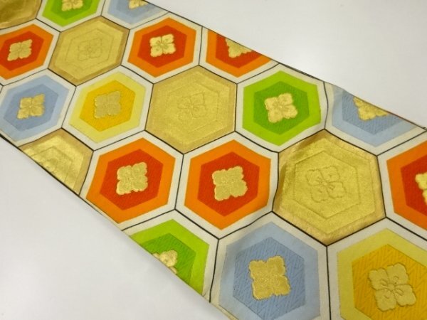 > ys7247310; 宗sou 花亀甲模様織出し袋帯(材料)【アンティーク】【着】
