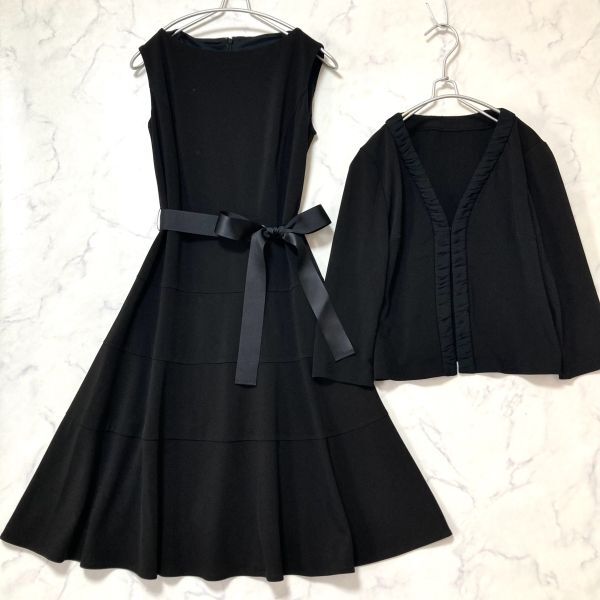 > 極美品 Harrods セットアップスーツ ワンピース フォーマル ジャケット ベルト Aライン トリアセ 春夏 レディースS 黒 ブラック ハロッズ