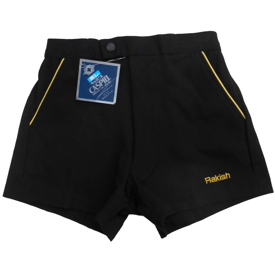 > 未使用 '80s Butterfly Rakish バタフライ S ショートパンツ 東レキャスピオ製 エステルジャージ 黒x黄色 ブラック 日本製 デッドストック
