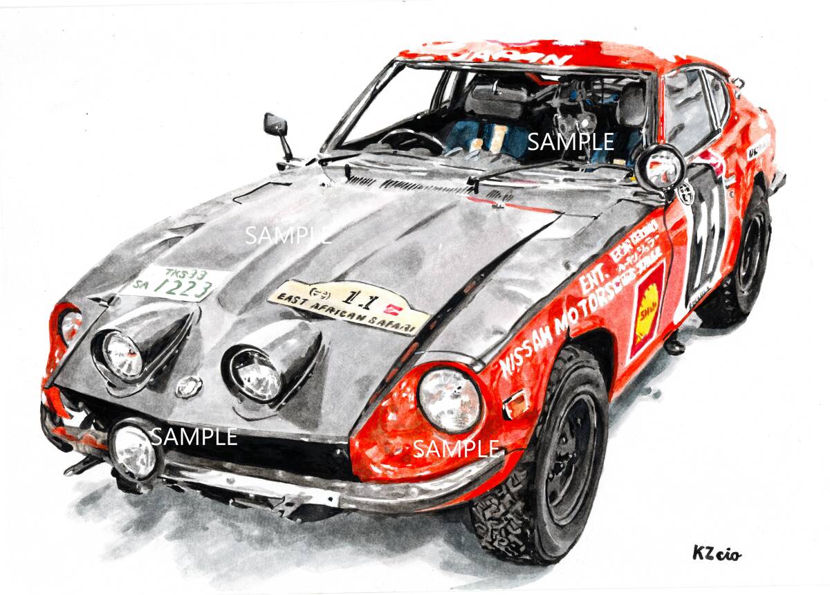 - A4プリントです。 ダットサン フェアレディZ サファリラリー 水彩画 旧車イラスト 240Z