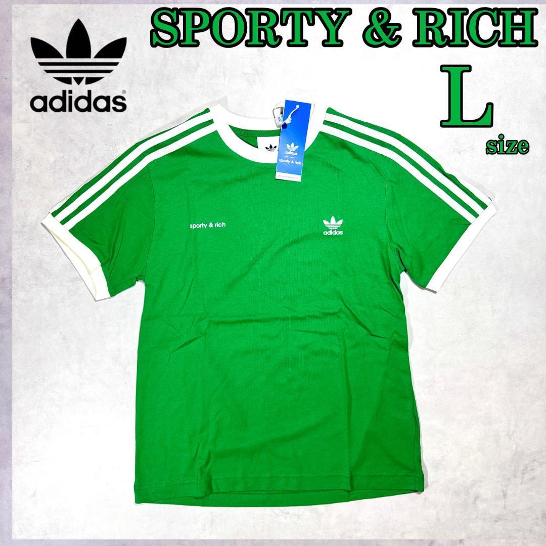 - 新品 Lsize アディダス スポーティー&リッチ 半袖 Tシャツ スポリチ Sporty & Rich adidas originals ストライプ 緑 グリーン 完売品