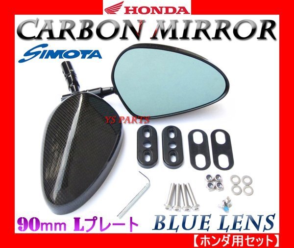 > [超軽量リアルカーボン]カーボンミラー楕円/ブルーレンズ/L/90mm ホンダ用CBR1100XXスーパーブラックバード等[フィッティングプレート付]