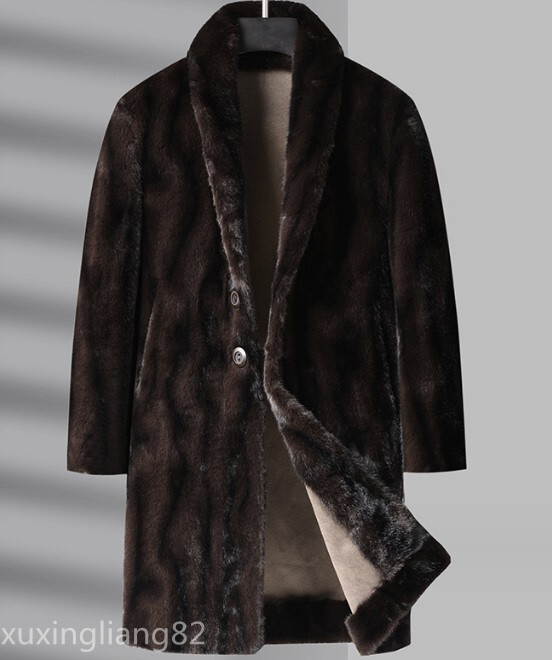 - 冬用 新品 両面着 ファーコート メンズ フェイクファー 毛皮一体 ロングコート 厚手 紳士 アウター カジュアル 防寒 暖か コーヒー/XL