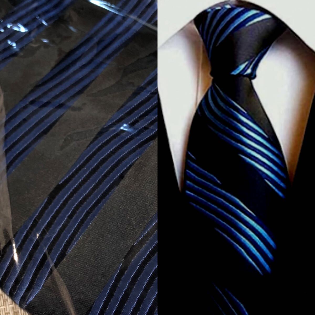 - メンズネクタイ ブラックブルーストライプ柄 ビジネス オフィス プレゼント オフィスワーク 1枚