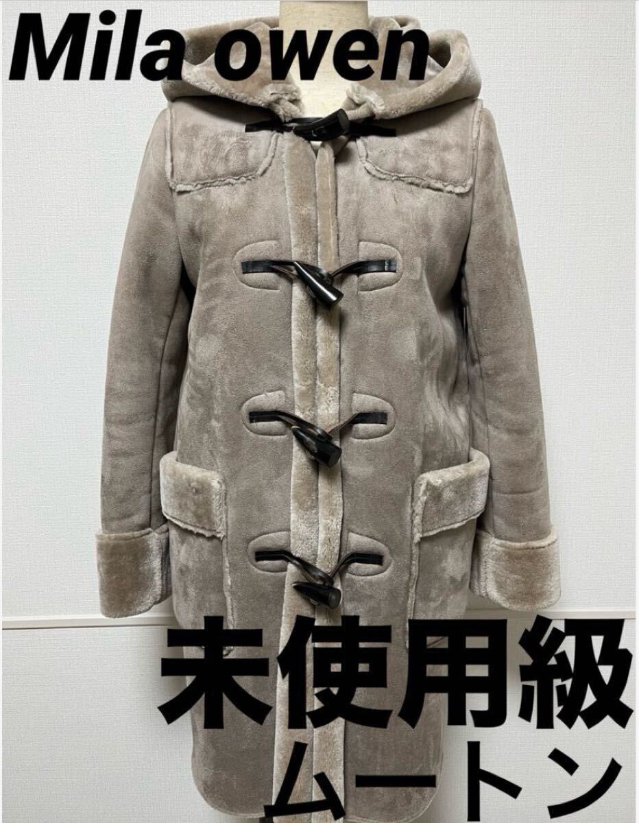 - 【未使用級 定価約3万トクルボタン牛革】Mila owen フェイク ムートン ダッフルコート ミラオーウェン モコモコ レディース 極暖 フード