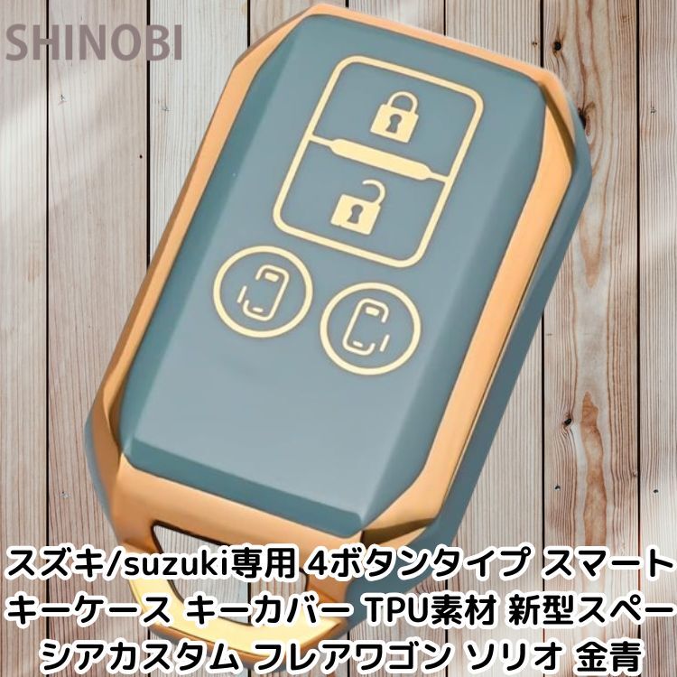 > スズキ/suzuki専用 4ボタンタイプ スマート キーケース キーカバー TPU素材 新型スペーシアカスタム フレアワゴン ソリオ 金青
