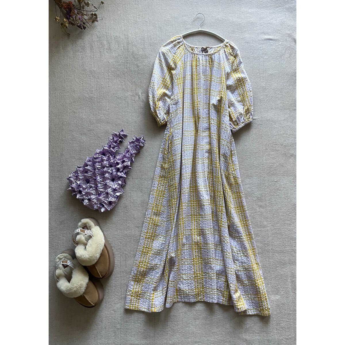 > BEAMS ロングワンピース B:MING by BEAMS 2WAYチェックワンピース ドレス フレア レディースMサイズ マキシ 美品 パフスリーブ