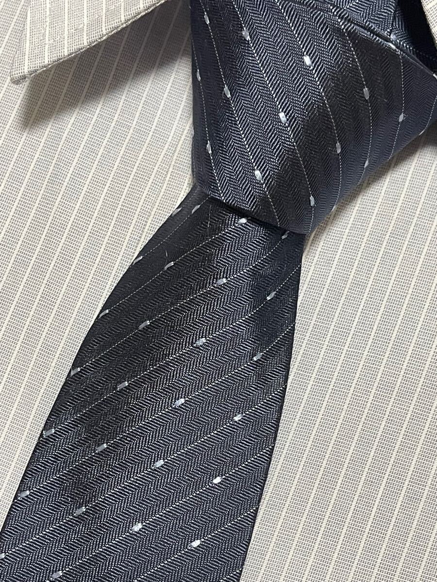 - 美品 ″Dior″ ディオールオム ドットストライプ ナロータイ エディスリマン ブランドネクタイ 501063