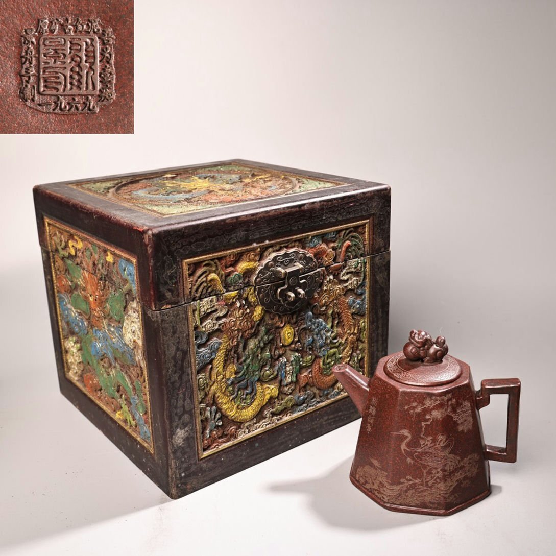 > ▼渡鶴羽▼P768時代朱泥 顧景舟 紫砂壺 在銘 /紫砂 煎茶道具 朱泥 茶壺